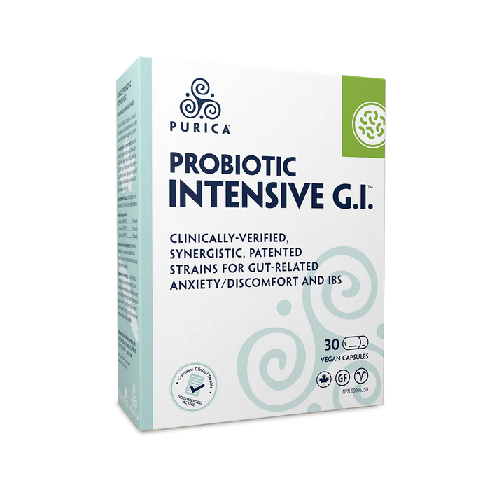 PURICA Probiotic Intensive GI, part of the PURICA Probiotic line, focuses on healthy gastrointestinal function through a patented blend of three unique clinical probiotic strains. Specially formulated for efficacy, it's proven in a published clinical trial to improve life quality in patients with diarrhea-predominant irritable bowel syndrome (IBS), prioritizing the potency and stability of the strains.