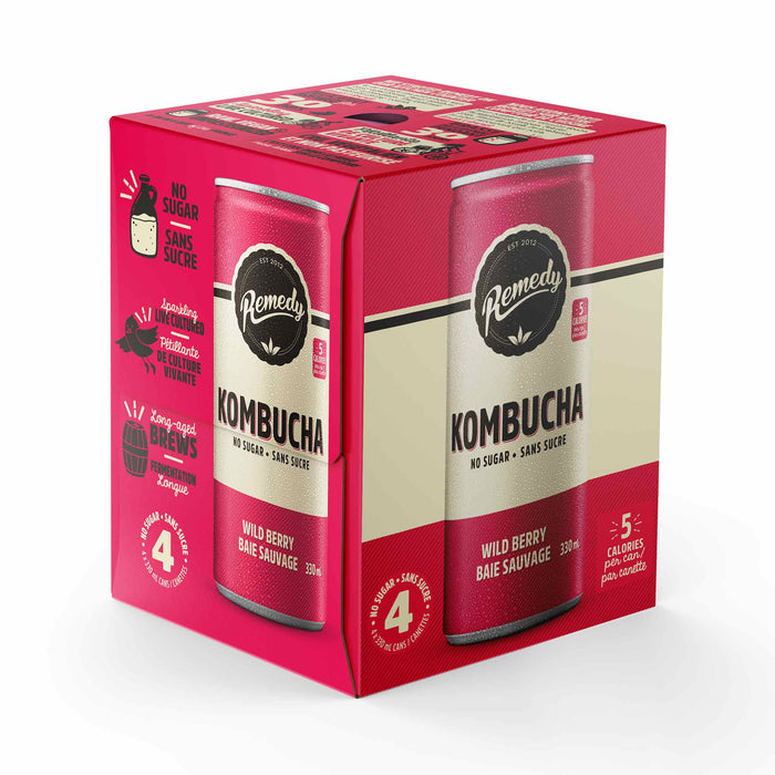 Remedy Organic Kombucha, No Sugar, Wild Berry 4x330ml