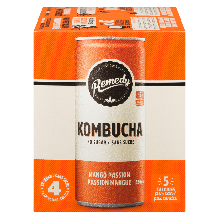 Sip your way to better health with Remedy sugar-free Kombucha mango passion flavour. Each can provides a taste of the tropics at only 5-calories! With 0 net carbs and zero sugar, this refreshing long-aged brewed kombucha is the easiest way to improve your digestion, boost your immune system, and keep you hydrated without compromising flavour!