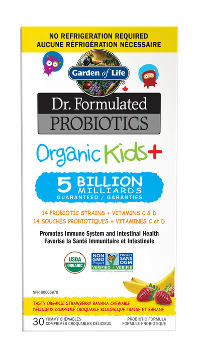 Garden of Life Dr. Formulated Probiotics Organic Kids + Strawberry Banana - 5 billion milliards 30 CHEWABLES