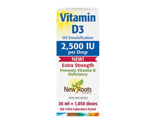 New Roots Herbal’s Vitamin D3 supplies the biologically active form of vitamin D. Vitamin D3 is critical for the absorption and regulation of calcium and phosphorus levels necessary for strong bones, teeth, and nails.