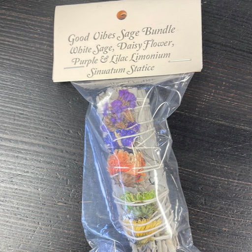 View full detailsGood Vibes Sage Bundle - White Sage, Daisy Flower, Purple & Lilac Liminium Sinuatum Statice 4"wand