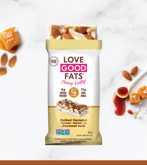View full detailsLove Good Fats Salted Caramel Flavour Chewy Nutty Bar Case - Keto, Gluten Free, Plant Base. 12X40g