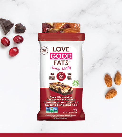 View full detailsLove Good Fats Dark Chocolatey Cranberry & Almond Chewy Nutty Bars Case - Keto, Gluten Free, Plant Based. 12X40g