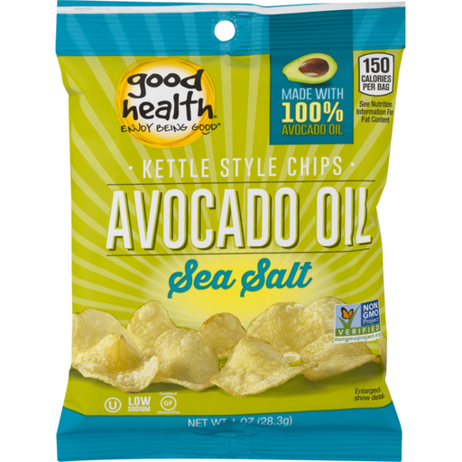 Good Health Avocado Oil Sea Salt Kettle Chips Have Less Fat Than Regular Potato Chips. With 100% Avocado Oil, These Chips Are A Savory Alternative ...