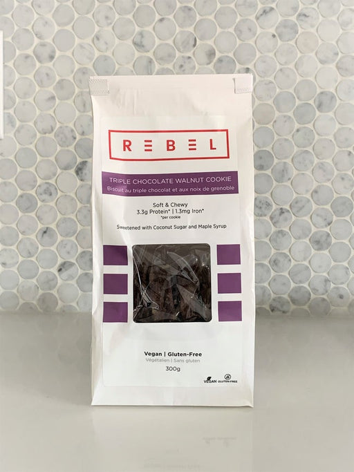Rebel Triple Chocolate Walnut Cookie - Soft & Chewy, Vegan, Gluten Free, Sweetened with Coconut Sugar and Maple Syrup 300g
