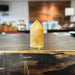 These citrine points are shaped to six sides and polished. Crystal points are often used to direct energies through the apex of a point.