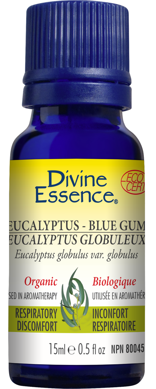 Eucalyptus Blue Gum essential oil is used in aromatherapy to soothe respiratory discomfort