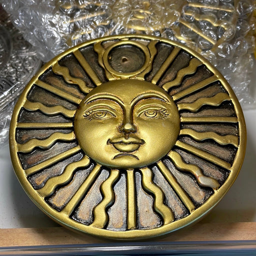 This glimmering painted resin incense holder in the sun design symbolizes power, strength and firmness.