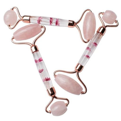 An aesthetic and soothing double ended massage roller made from rose quartz. The resin handle features dried flowers which are suspended in resin.T...