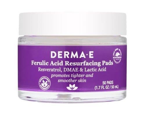 View full detailsDerma E Ferulic Acid Resurfacing Pads - An Effective Blend to Help Protect Skin From Collagen Degradation and Exfoliate for a Smoother Complexion. 50pads