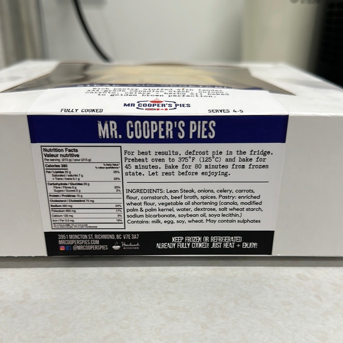 Mr. Cooper's Pies Steak and Vegetable Fully Cooked Family Pie 1000g