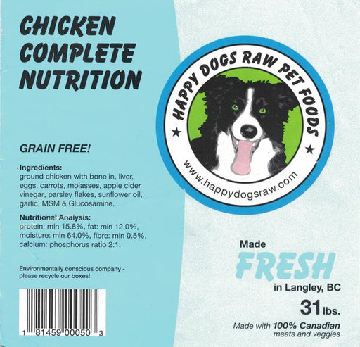 Happy dogs Raw Food, Chicken Complete 31lb