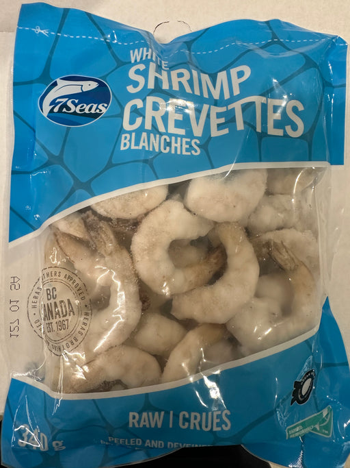 Seven Seas Raw White Shrimp Tail On, Peeled & Deveined. 340g