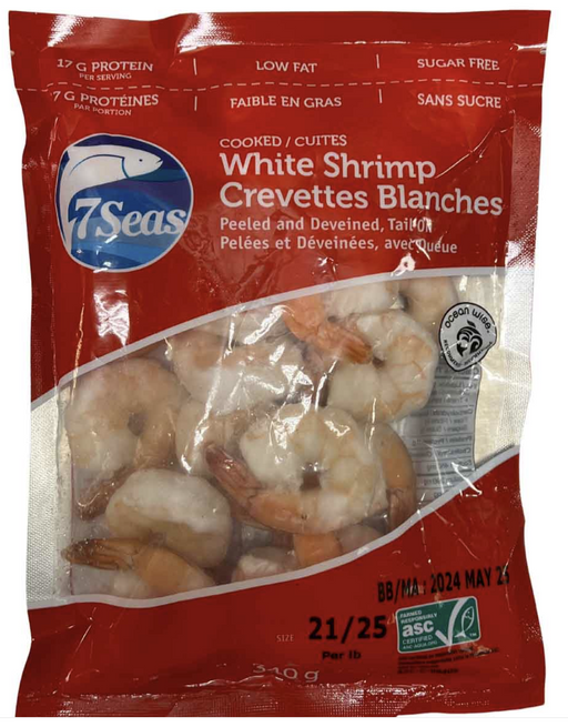 Seven Seas Cooked White Shrimp Tail On, Peeled & Deveined. 340g