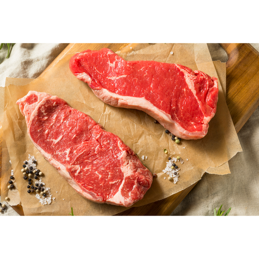 100% grass-fed beef. The striploin steak, also known as New York strip, is a flavorful and tender cut of beef. With a balance of lean meat and marb...