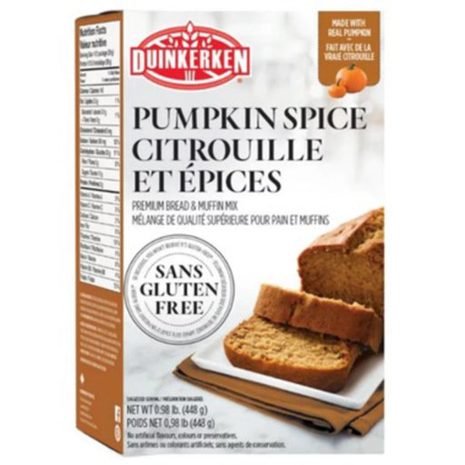 Made with Real Pumpkin great for Thanksgiving. Gluten Free, Egg free, Soy free, Natural Bread and Muffin Mix. Made in Canada. Brand Duinkerken ...