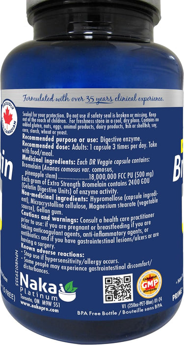 NAKA Bromelain 500mg Delayed Release Digestive Enzyme 75vcaps