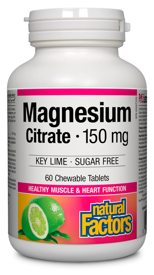 Natural Factors Magnesium provides 150 mg of high-quality, bioavailable magnesium citrate in a delicious, sugar-free, Key lime flavoured chewable t...