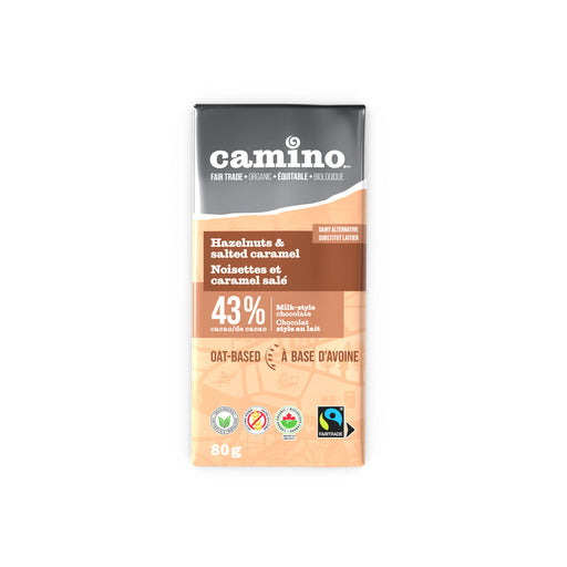 View full detailsCocoa Camino Hazelnut & Salted Caramel Oat-Based Chocolate Bar Organic 80g