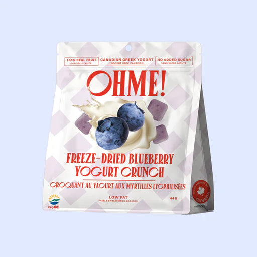 Experience the perfect snack fusion with OHME! Freeze-Dried Blueberry Yogurt Crunch. This probiotic-rich treat combines creamy Greek yogurt and jui...