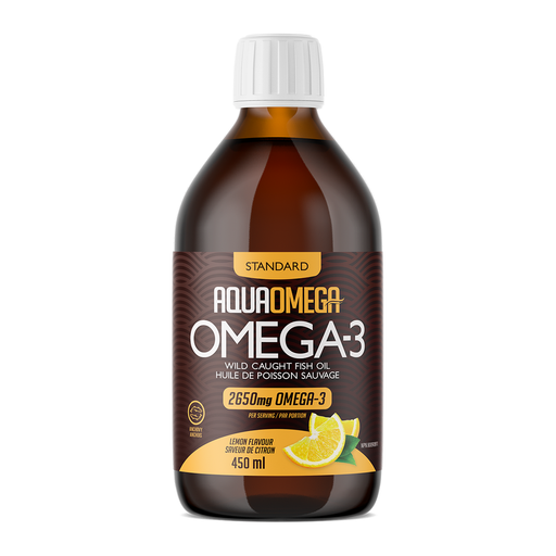 View full detailsAqua Omega Standard Omega-3 Wild Caught Fish Oil Lemon Flavour 450ml
