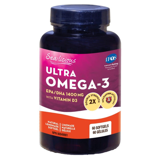 Sea-licious Ultra Omega-3 double strength with vitamin D3 is the perfect choice for you. Two easy-to-swallow softgels provides 1500mg of triglyceri...