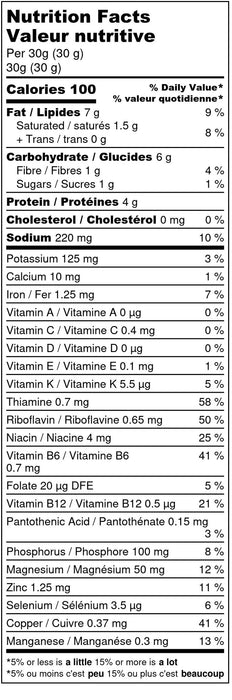Ingredients: Cashews, Filtered Water, Fresh Garlic, Nutritional Yeast, Himalayan Pink Salt, Spices, Probiotics Ingrédients: Noix de cajou, Eau filtrée, Ail, Levure alimentaire, Épices, Sel, Probiotiques Contains: Tree nuts Contient: Noix May Contain: Soy, Eggs, Milk, Wheat Peut Contenir: Soja, Oeufs, Lait, Blé