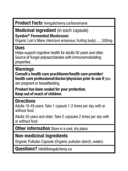 Living Alchemy MycoSynergy Fermented Lion's Mane Mushroom 60vcaps