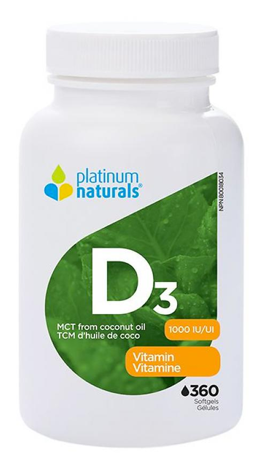 View full detailsPlatinum Naturals - D3 Vitamin 1000IU ( MCT from Cocount Oil) 360 Softgels