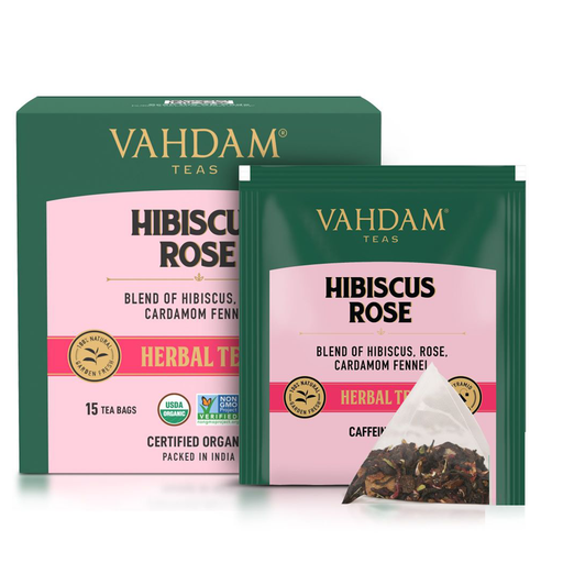 View full detailsVahdam India Hibiscus Rose Hearbal Tea Organic - Caffeine Free 15teabags
