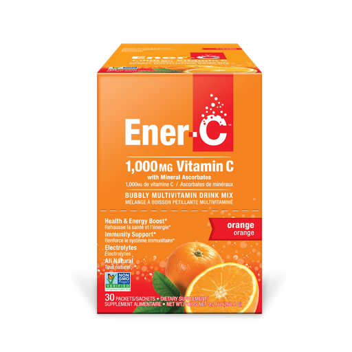 One box of orange flavour effervescent multivitamin drink mix, 30 packets. Ener-C Multivitamin Drink Mix is a deliciously effervescent and all nat...
