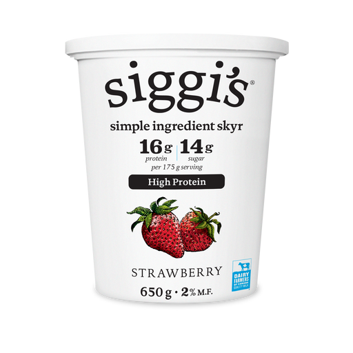 Siggi's Strawberry Skyr Yogurt - 16g Protein, 2% M.F., Low Sugar Icelandic Yogurt (650g)