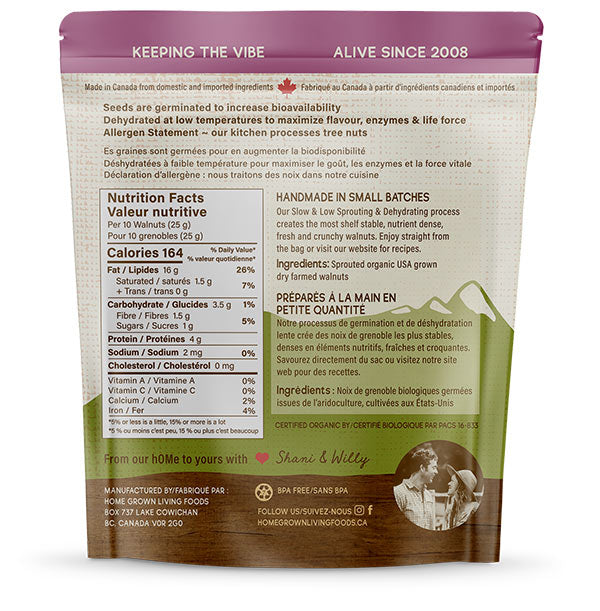 Home Grown Living Foods Sprouted Organic Dry Farmed Walnuts 100g