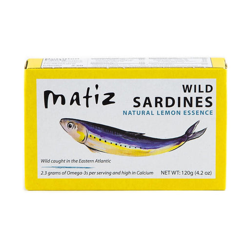 Matiz Gallego Sardines with Lemon are wild-caught in the waters of the Eastern Atlantic and hand packed in Galicia in Northern Spain. Matiz sardines are considered one of the finest sardines available. Prized for their plump, tender texture and rich flavor, they are prepared in traditional Spanish style with a touch of natural lemon.