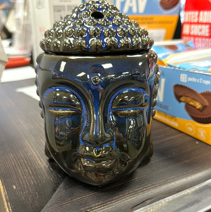 This aromatherapy oil heater is made of ceramic in a mood setting midnight blue. The Buddha head shape allows the bowl to be deep, allowing for a longer burning time.