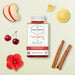 Ingredients: *Cold pressed juice blend (*tart cherry, *apple, *lemon), *Hibiscus infusion (water, *hibiscus), *Cinnamon extract.