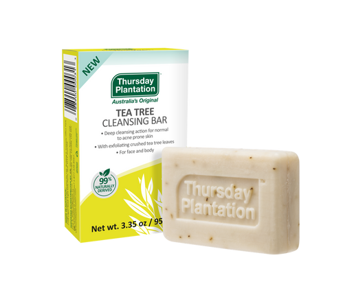 Thursday Plantation 99% naturally derived cleansing bar extracts even more goodness from the Australian tea tree plant by harnessing 100% pure Tea Tree Oil as well as crushed tea tree leaves to cleanse, purify and exfoliate skin. For face, body and hands.